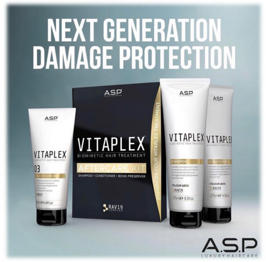 Is a revolutionary biometic system, that replicates & rebuilds the natural structure of the hair, allowing lightening and coloring without compromising the integrity of the guests hair. RAV19 in Vitaplex is technology at its best!! Hair looks & feels significantly healthier, restoring hair to a Virgin like state.